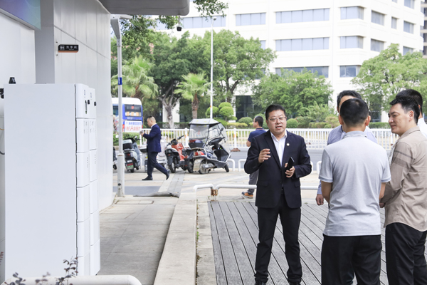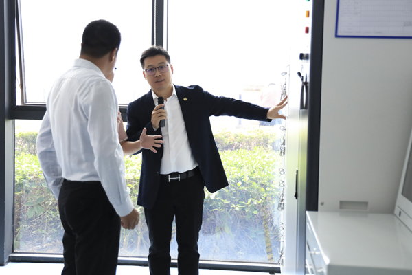 xk平台_XK体育(中国)股份副董事长兼总裁刘作斌带领客户嘉宾参观、体验电动自行车、电动摩托车电池检测