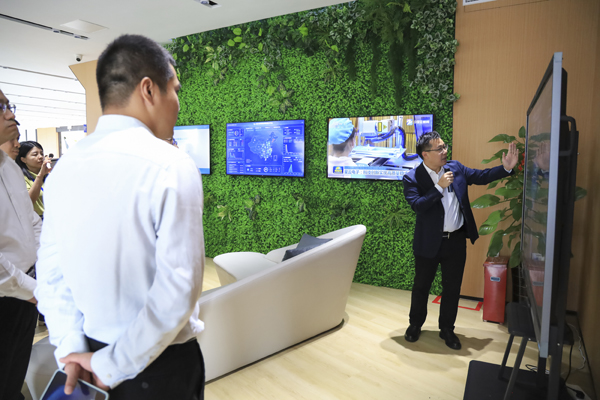 客户与嘉宾参观、体验电动汽车电池检测